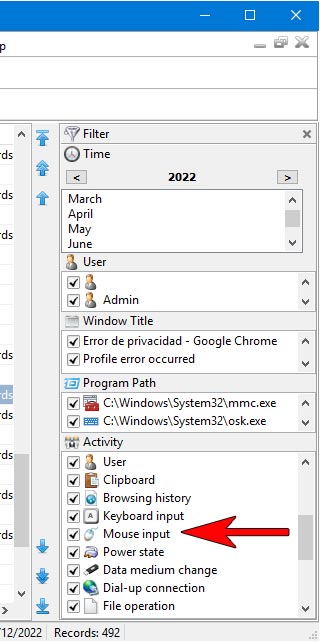 根据所选窗口标题过滤记录。 右键单击将打开一个菜单,其中包含用于选择的选项。