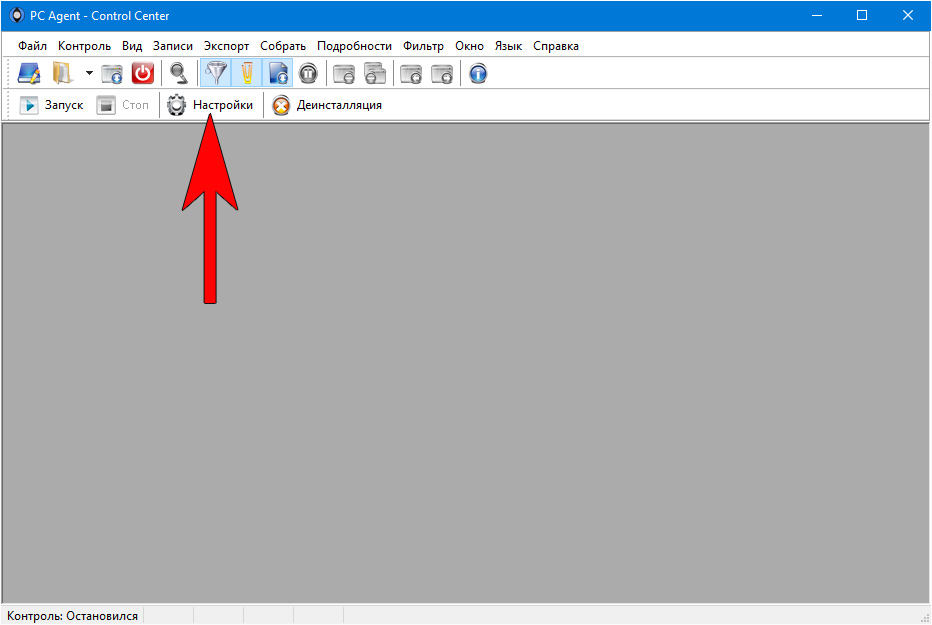 1. Загрузите и откройте центр управления на контролируемом ПК. Нажмите на «Настройки».