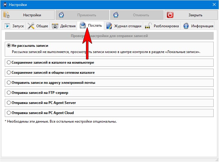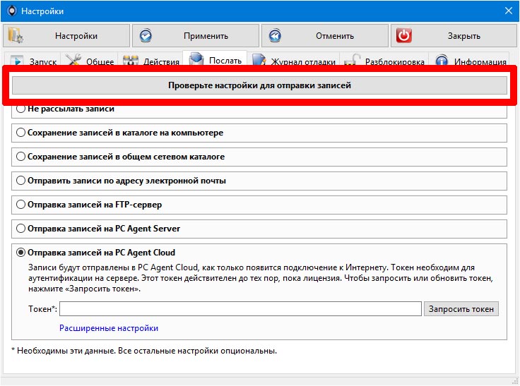 7. Проверьте настройки для отправки записей. Прочитайте больше...